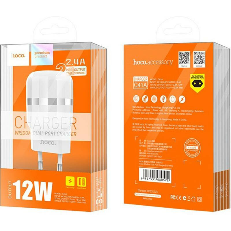 Сетевое зарядное устройство HOCO C41A Wisdom 2xUSB, 2.4A, 10.8W, белый