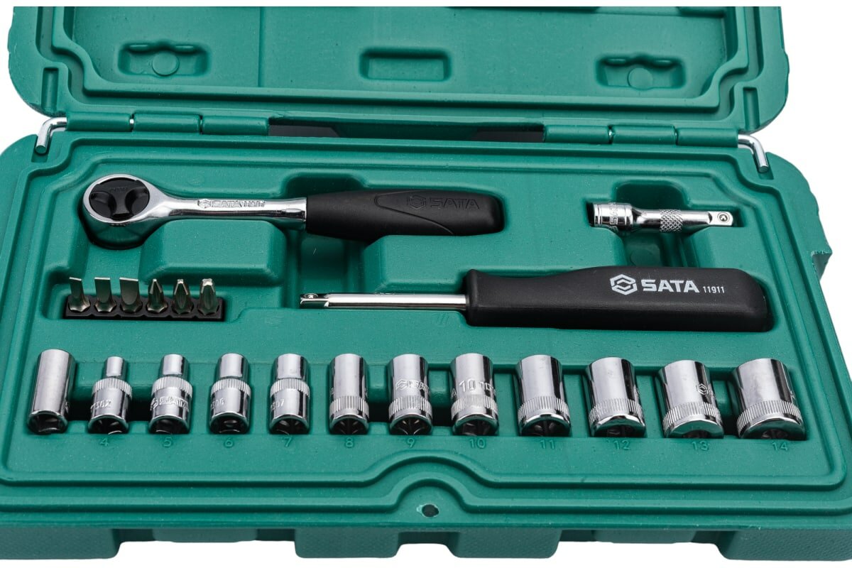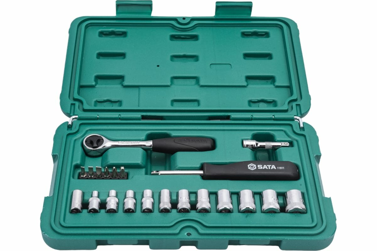 Набор торцевых головок SATA с трещоткой, под размер 1/4", комплект 21 предмет, арт. 09521 (обновлённый)