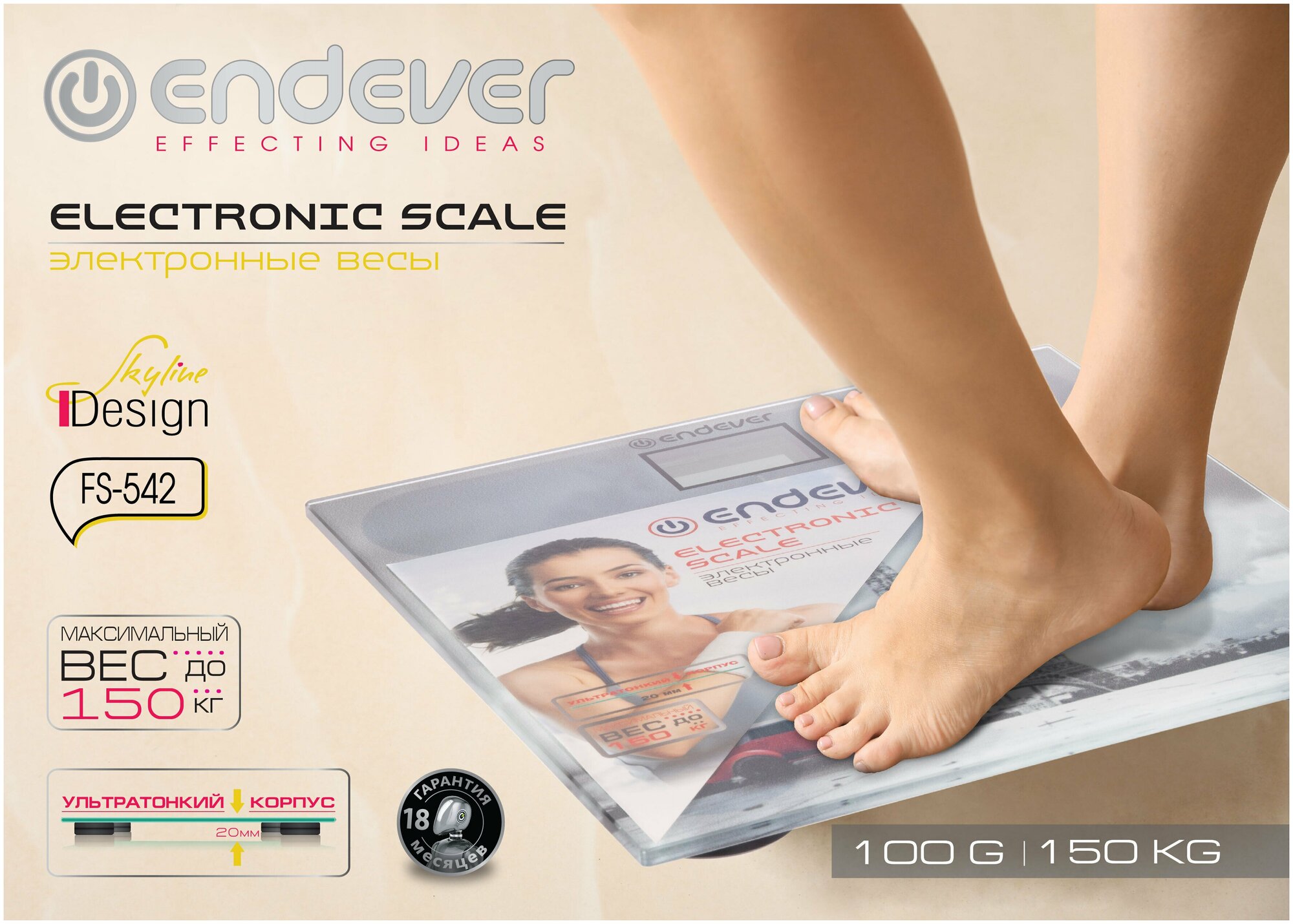 Весы напольные электронные Endever FS-542 / рисунок Париж / закаленное стекло / до 150 кг