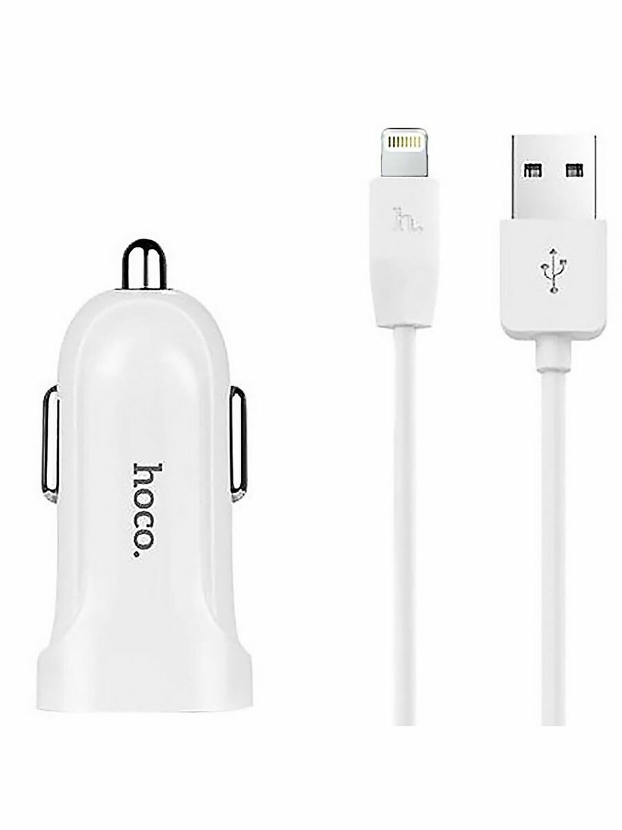 Автомобильное зарядное устройство Hoco Z2A White зарядка 2.4А 2 USB-порта + кабель Lightning - белый