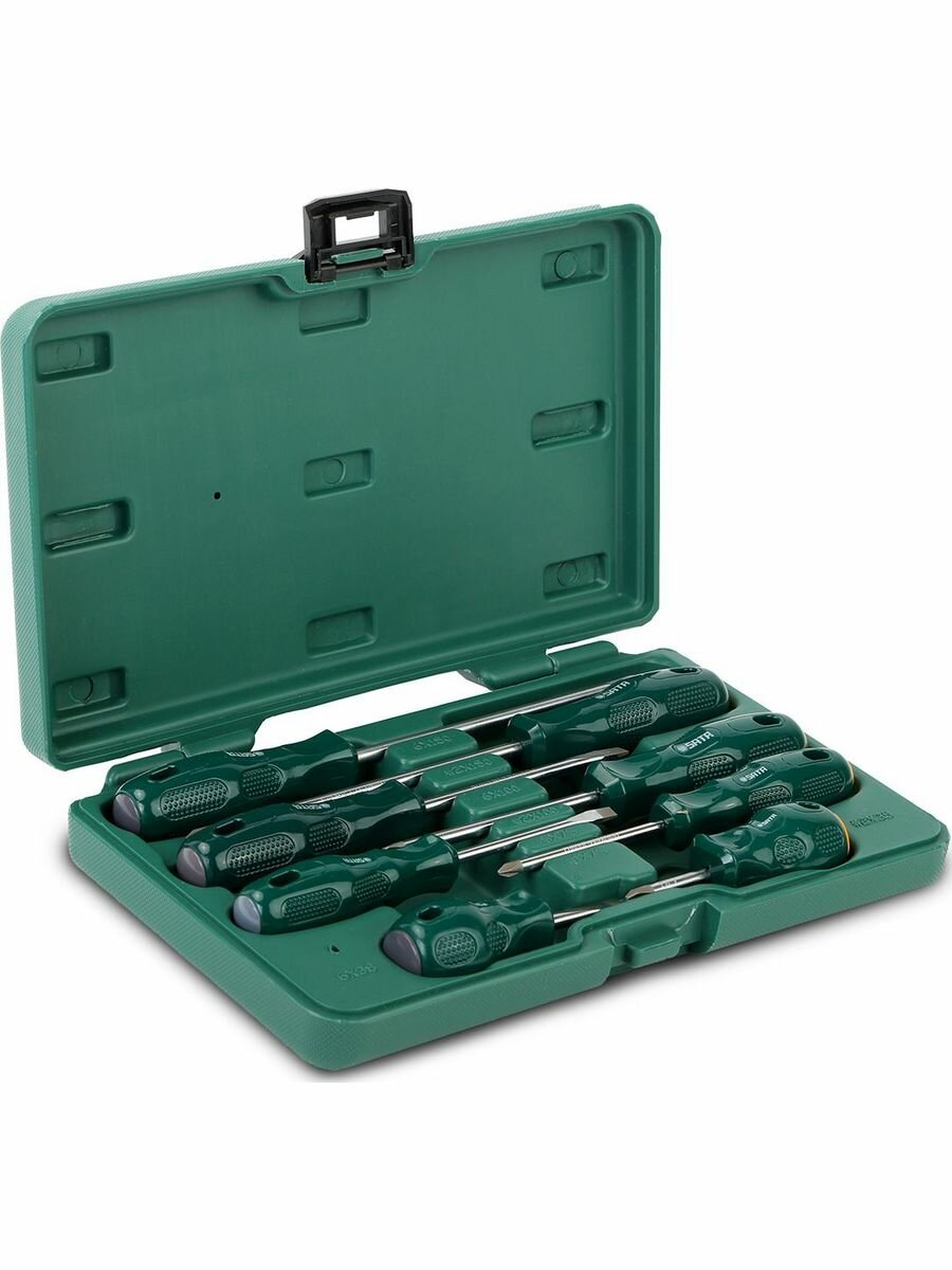 Набор отверток SATA, шлицевые (SL5, SL6x3) и крестовые (PH1, PH2x3), 8 предметов, магнитные, в футляре, арт. 09306