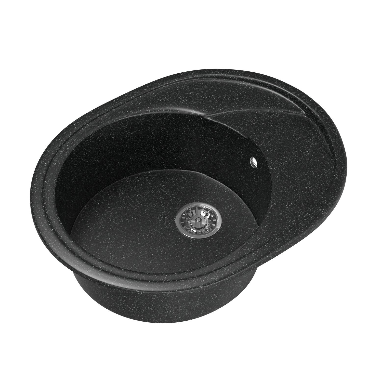 Мойка для кухни из искусственного мрамора, овальная, с крылом, с сифоном, MIXLINE ML-GM 17, черная