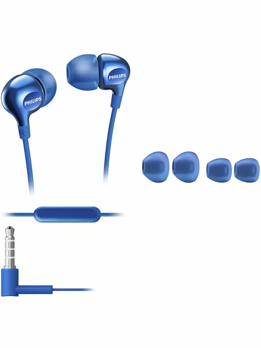 Наушники вкладыши с микрофоном Philips SHE3705 , мобильная гарнитура, синие