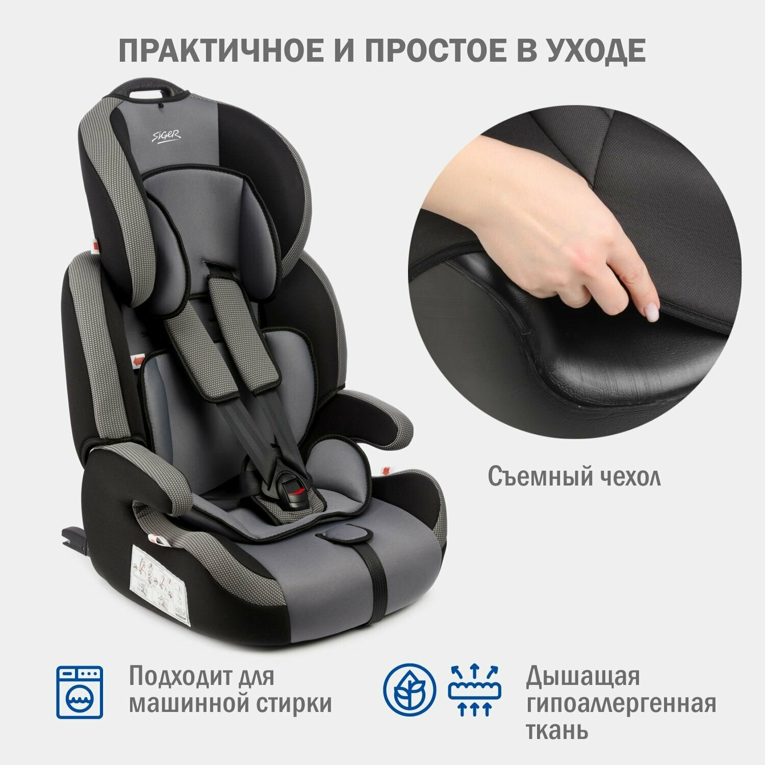 Удерживающее устройство для детей SIGER "Стар ISOFIX" серый, гр. I/II/III, 9-36 кг, 1-12 лет
