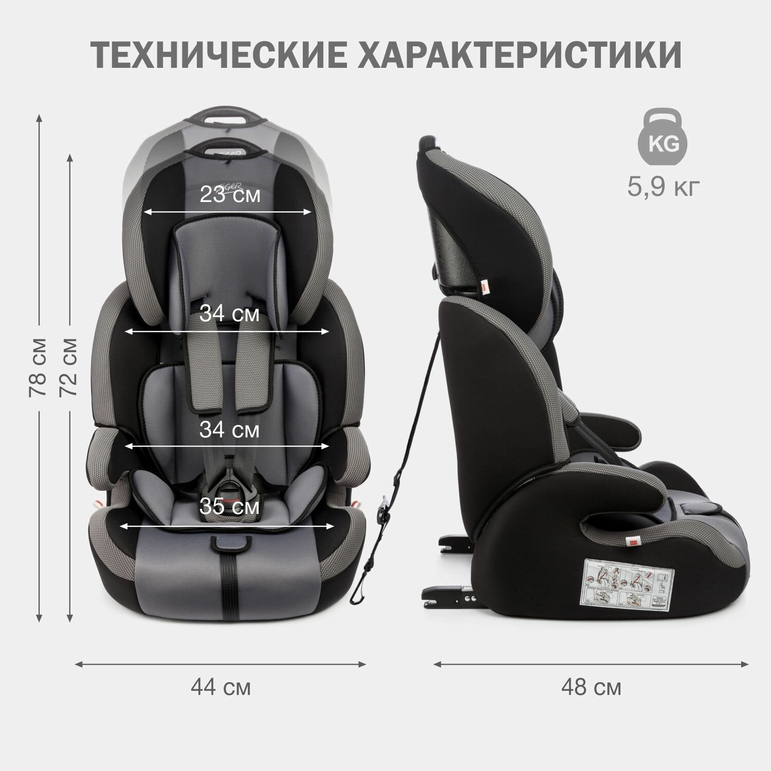 Автокресло SIGER Стар Изофикс, 1/2/3, от 1 до 12 лет, серый/черный (KRES0475)