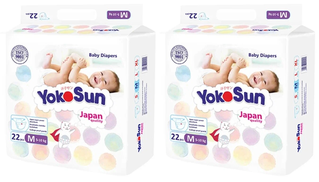 Купить Подгузники YokoSun, размер M, 5-10 кг, 22 шт, 2 уп