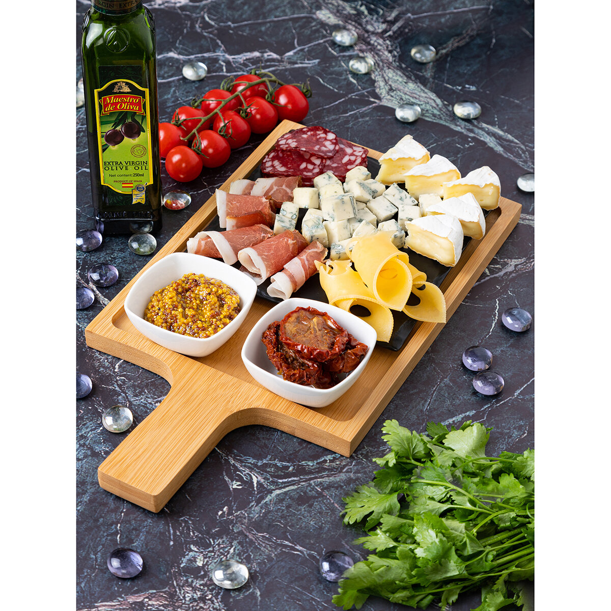 | Комплектация | разделочная доска-поднос, подставка для сыра, 2 соусника |