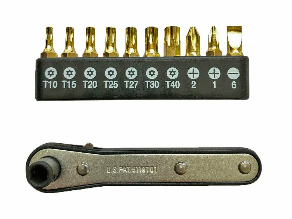 Набор бит 1/4" SL6, PH1-2, TORX, Т10Н-Т40Н с ключом трещоткой 11 предметов ( JTC-U11MC )