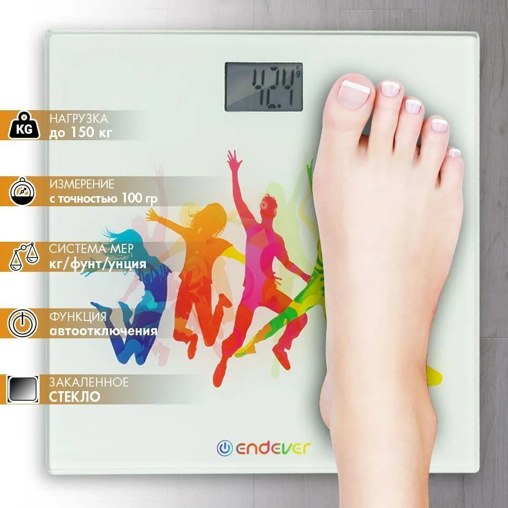 Весы электронные напольные Endever Aurora-562 рисунок Спортсмены, материал закаленное стекло, до 150кг