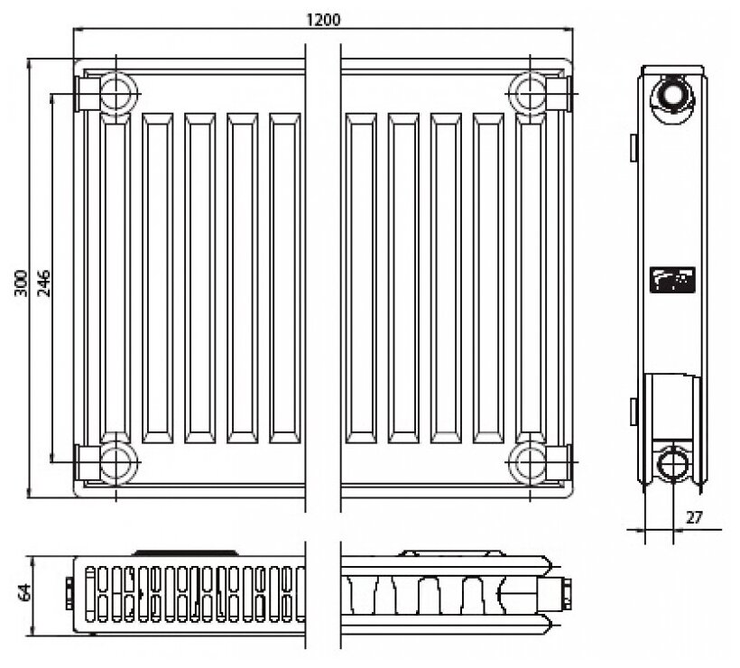 Радиатор панельный KERMI Profil-K_FK0 тип 12 высота 300 ширина 1200 профильный, боковое подключение 1/2"