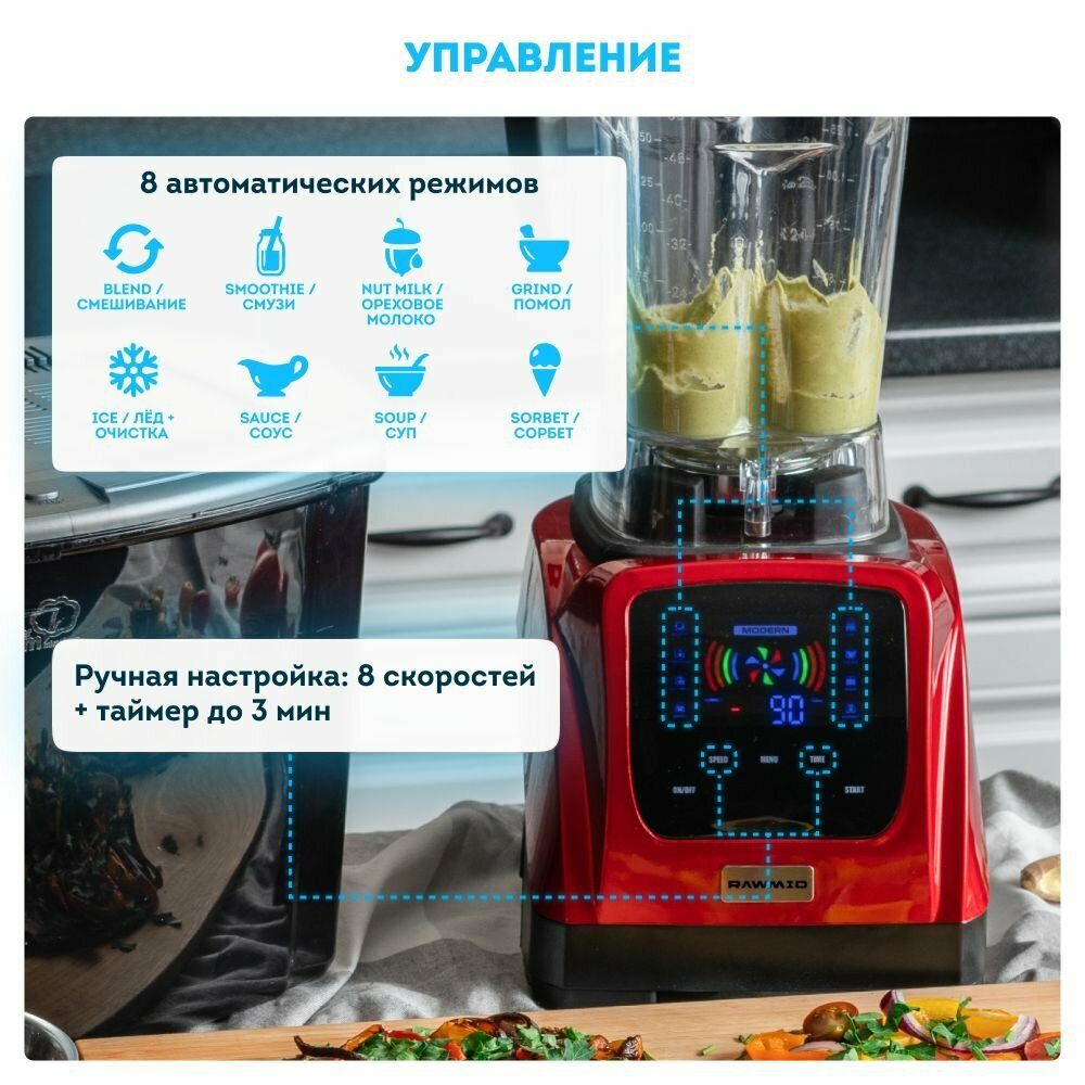 Стационарный блендер для смузи и коктейлей RAWMID Modern 2 BDM-06, профессиональный блендер для паст, урбеча. Расширенный комплект.
