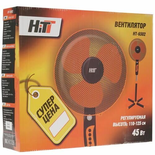 Вентилятор напольный HITT HT-6502, черный/оранжевый