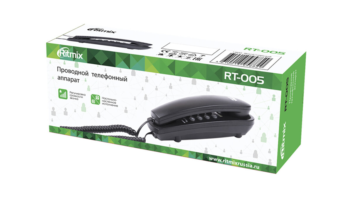 Проводной телефон Ritmix RT-005, настольно-настенный, Hi-Low, отключ. микрофона, черный