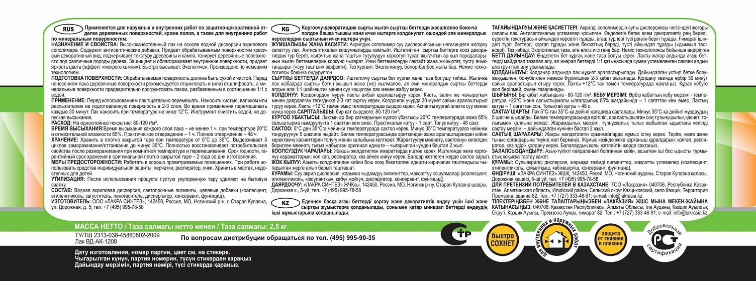Лак акриловый лакра 2,5кг орегон, арт.лт-орегон2,5