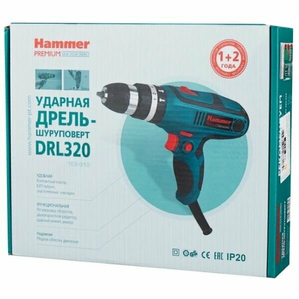 Купить Дрель-шуруповерт ударная HAMMER DRL320 PREMIUM