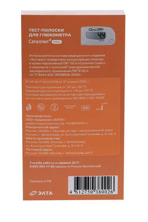 Тест-полоски Сателлит Плюс ПКГЭ-02.4 для глюкометра Элта 50 шт