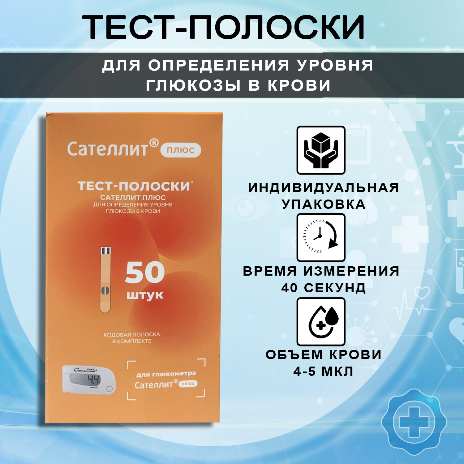 тест-полоски для глюкометра сателлит плюс 50 шт