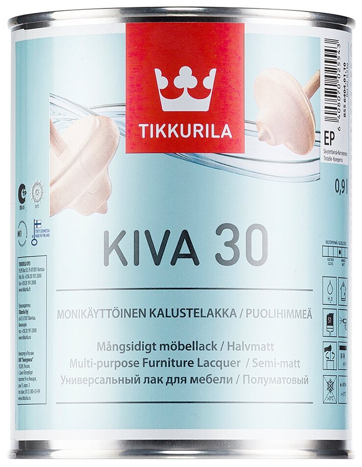 Tikkurila Kiva 30 / Тиккурила Кива лак для мебели полуматовый 0,9л