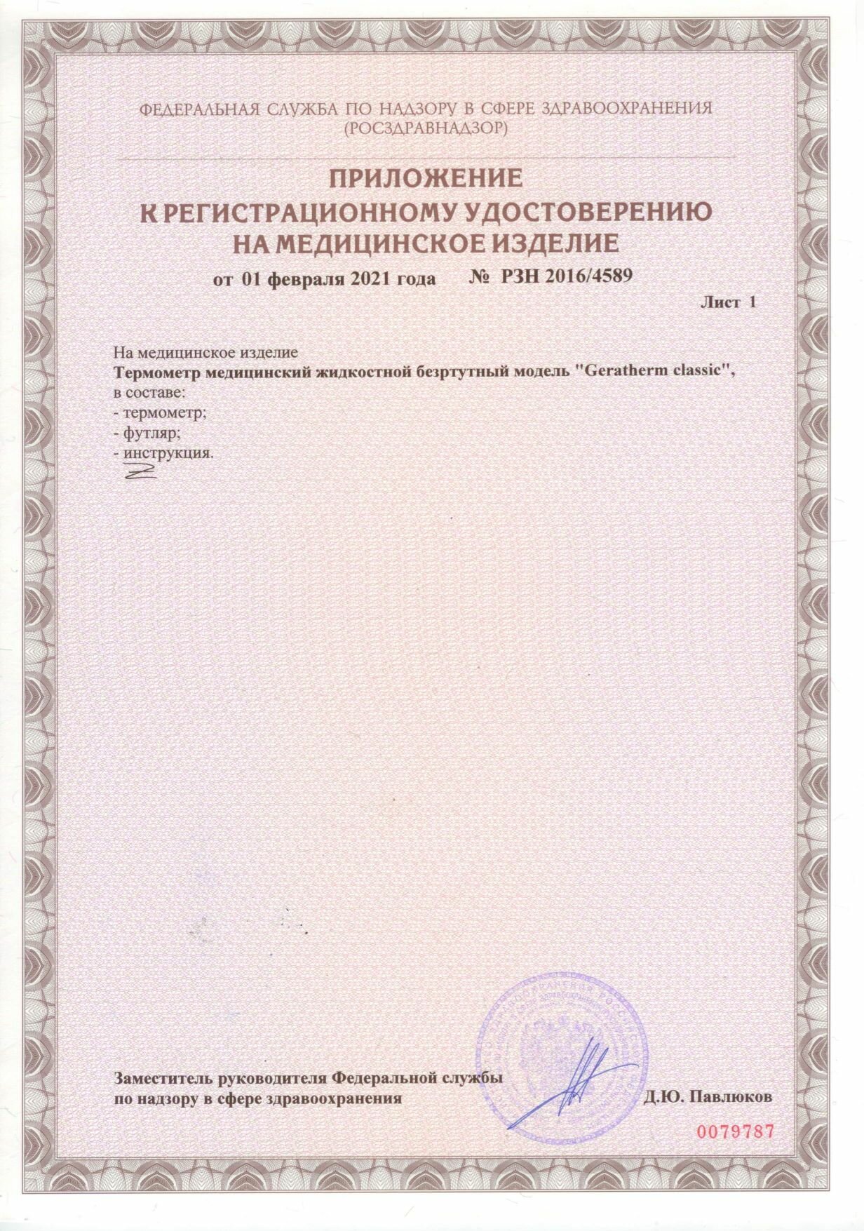 Термометр безртутный медицинский жидкостной Classic Geratherm/Гератерм