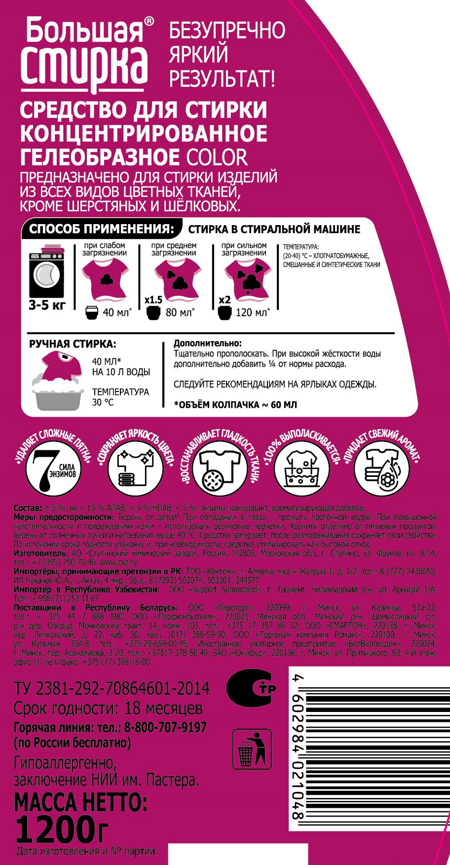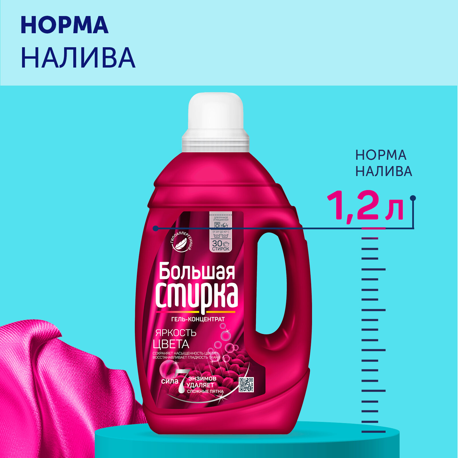СохранитьБольшая Стирка Гель для стирки цветного белья, Порошок жидкий 1,2 л интересное: