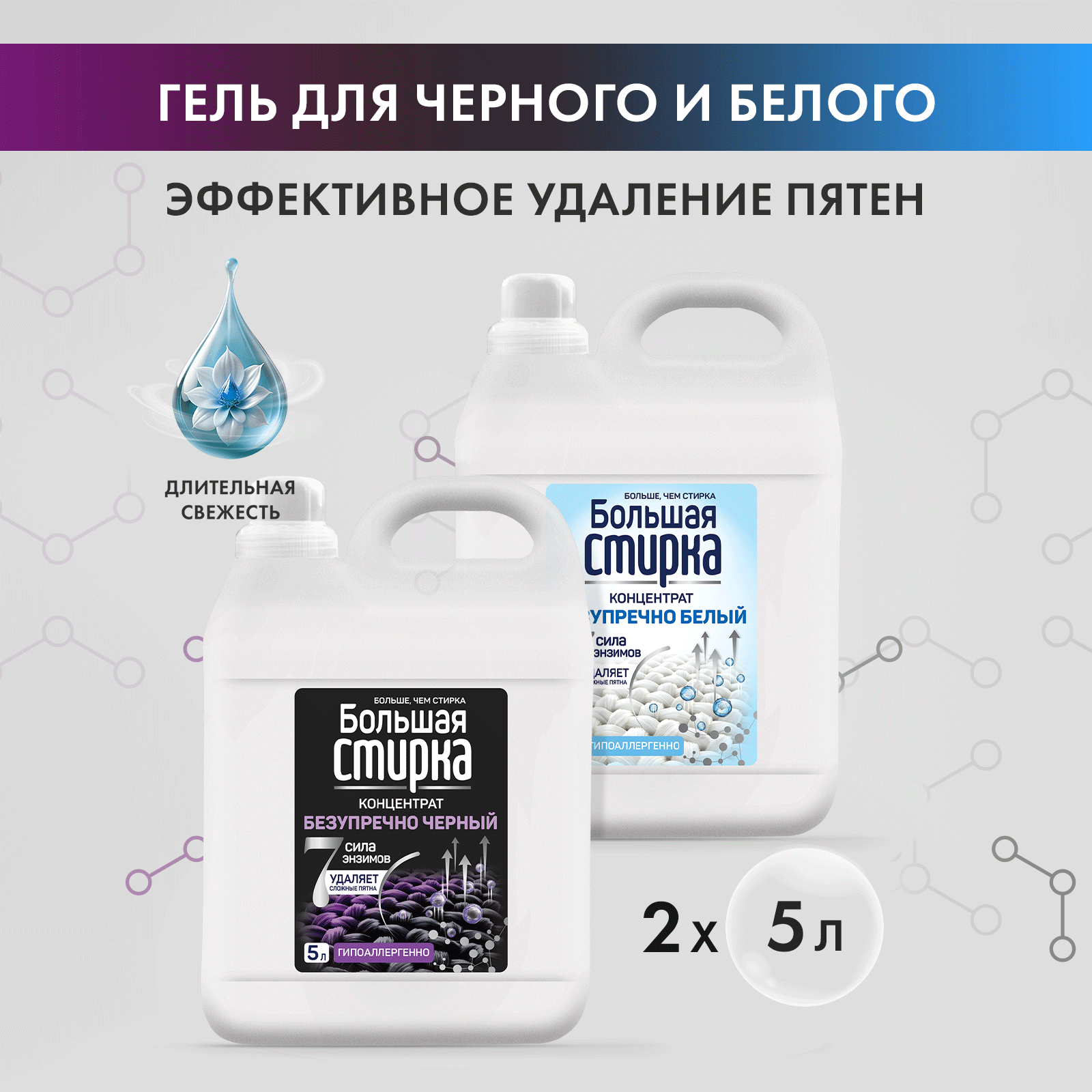Большая Стирка Набор: Гель для стирки черных и темных тканей 5 л + Гель для стирки белых тканей 5 л (2 шт)
