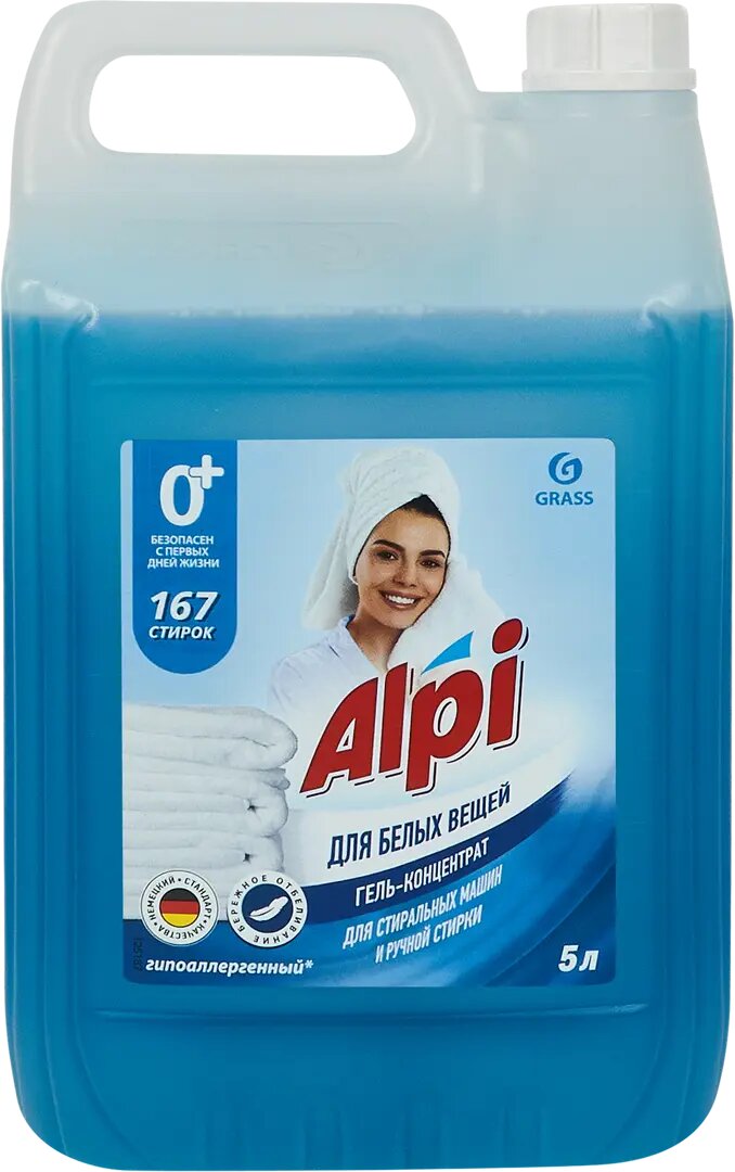 Гель для стирки Grass Alpi концентрат для белых вещей, 5 л, 5 кг, бутылка
