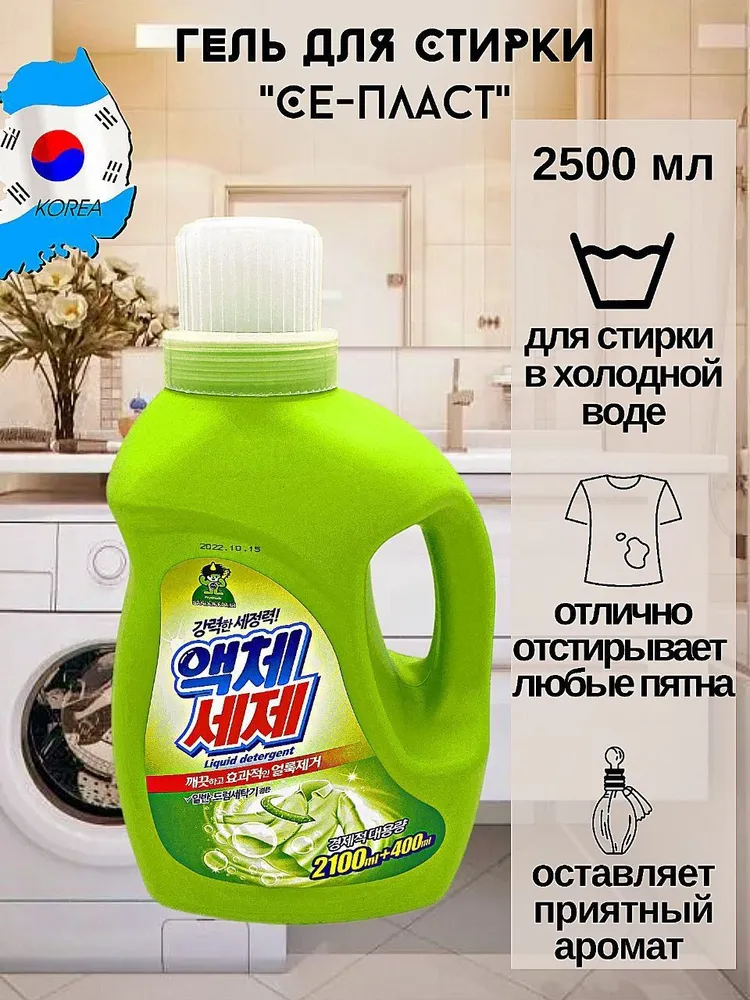 Sandokkaebi Гель для стирки белья / Средство для стирки жидкое «Се-Плас» / Стиральный порошок жидкий 2100 мл + 400 мл / Стирка гель универсальный / Корея