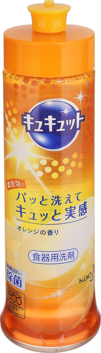 Kao Kyukyutto Средство для удаления жира и мытья посуды, овощей и фруктов с ароматом Апельсина 240 мл