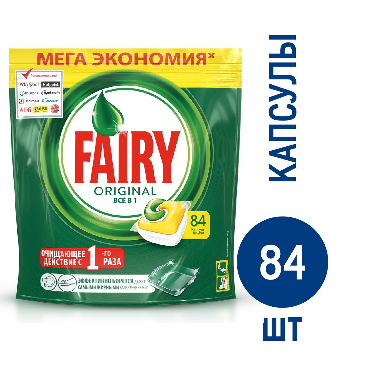 Капсулы для посудомоечной машины Fairy Original All in 1 капсулы, 84 шт., пакет