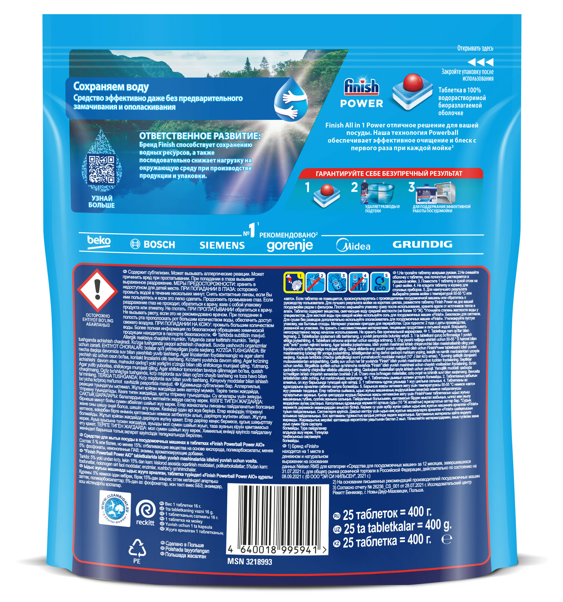 Финиш POWER All in 1 Средство для посудомоечной машины таблетки 25 шт/ уп.