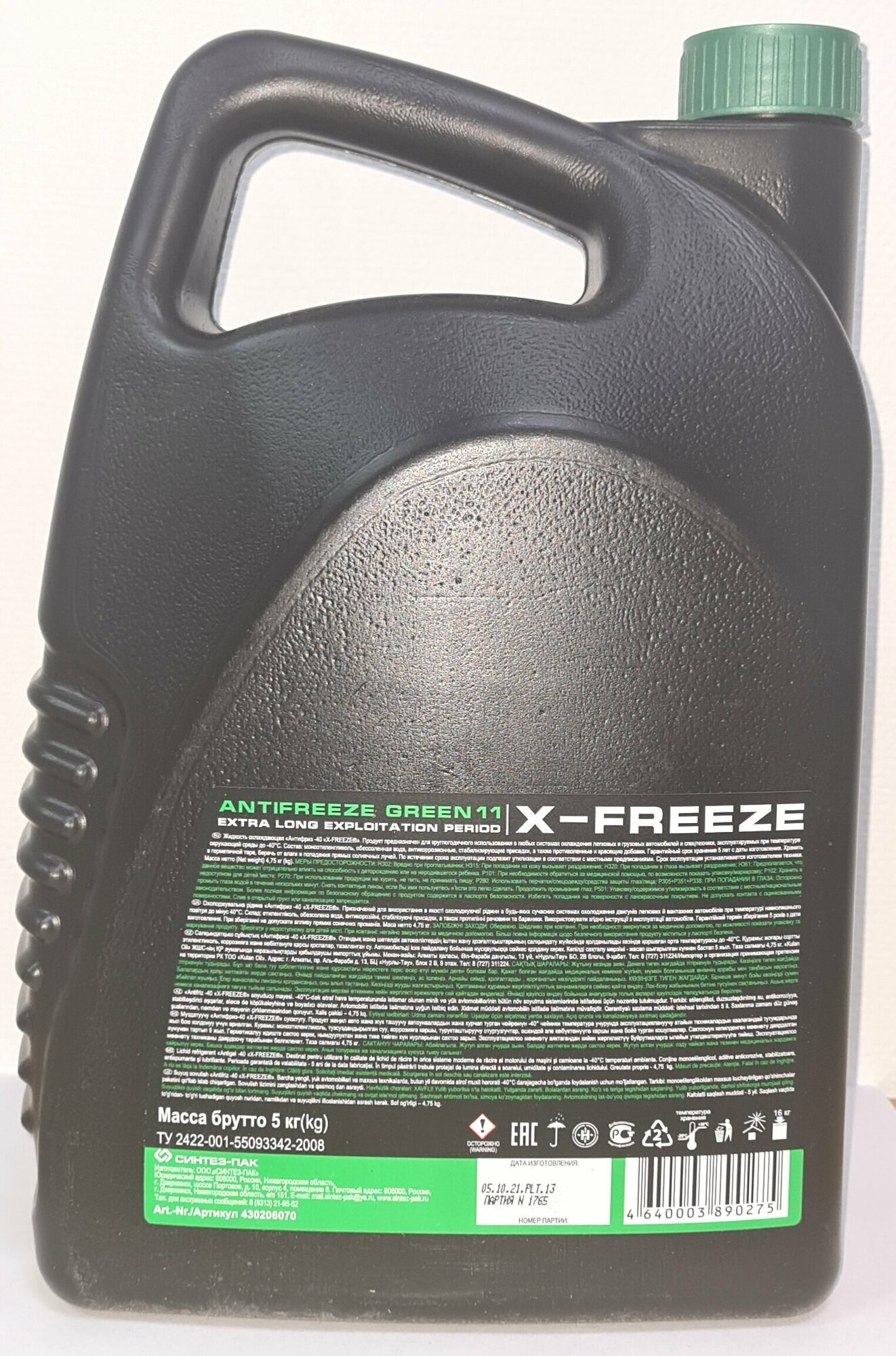 Антифриз (зеленый) X-Freeze GREEN G11 (-40°) 5 кг "Тосол-Синтез" (г.Дзержинск)