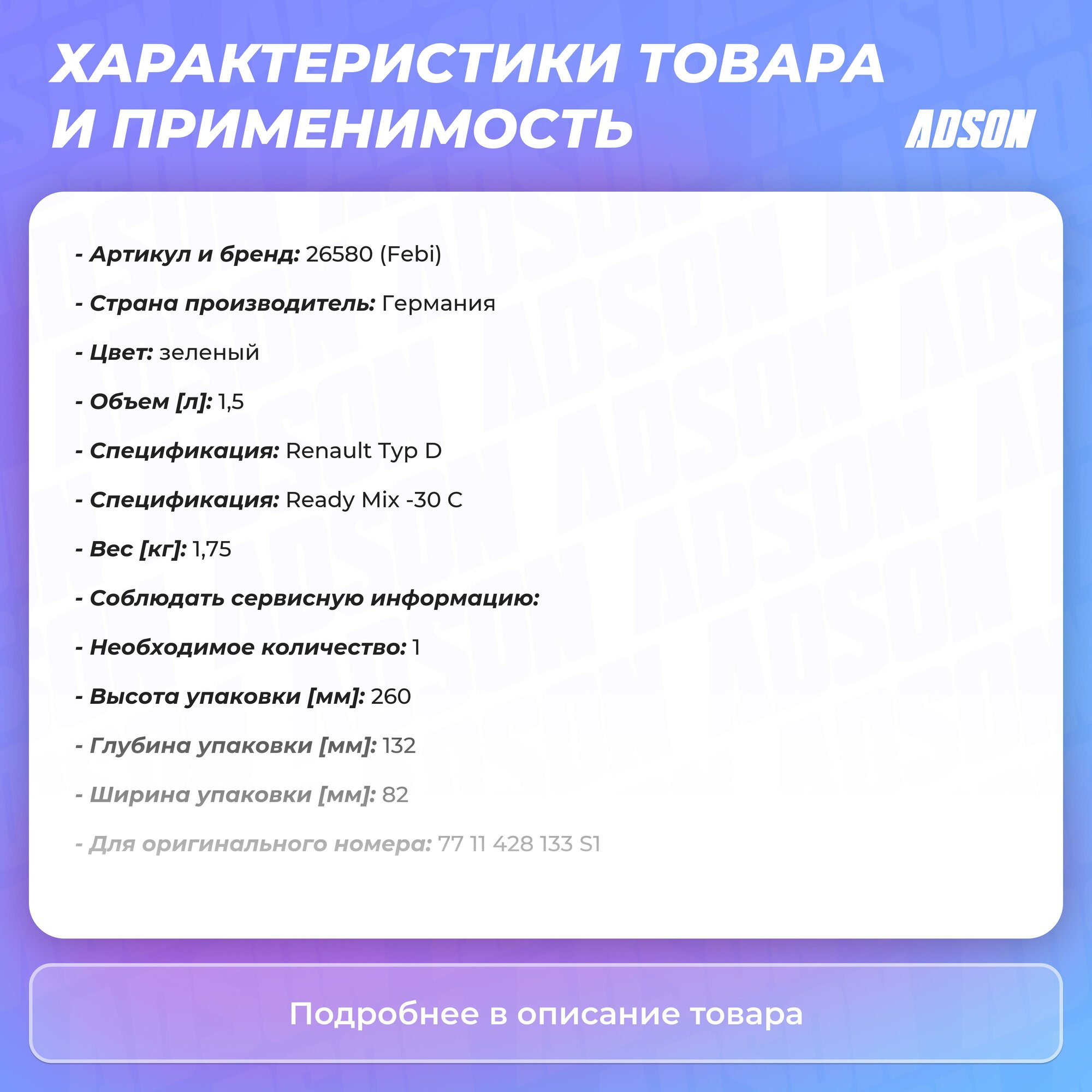 Аhtифpиз зeлehый 15л 30c renaut loganlada largus и дp, FEBI 26580 (1 шт.)