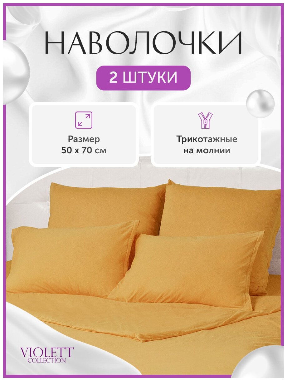 Наволочки 50х70 KUPU-KUPU трикотажные, на молнии 2шт, горчица