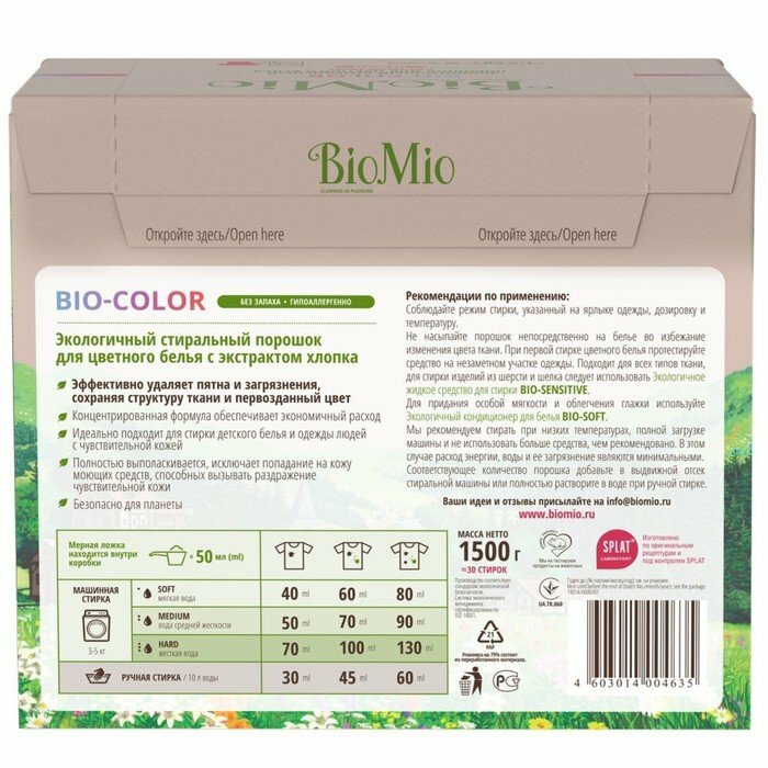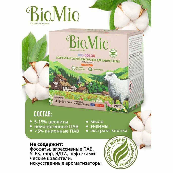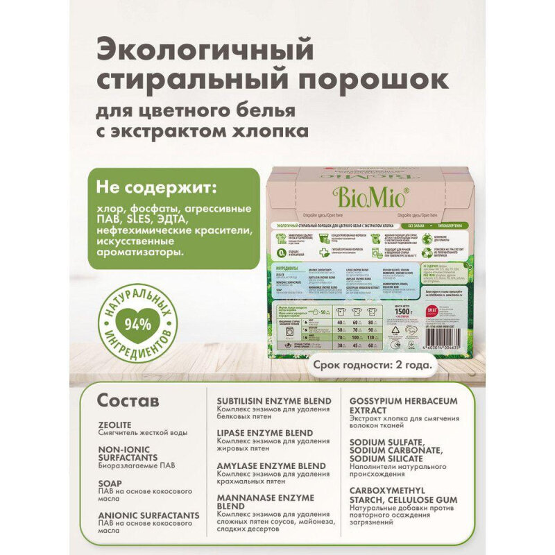 Стиральный порошок BioMio BIO-COLOR с экстрактом хлопка, 1,5 кг