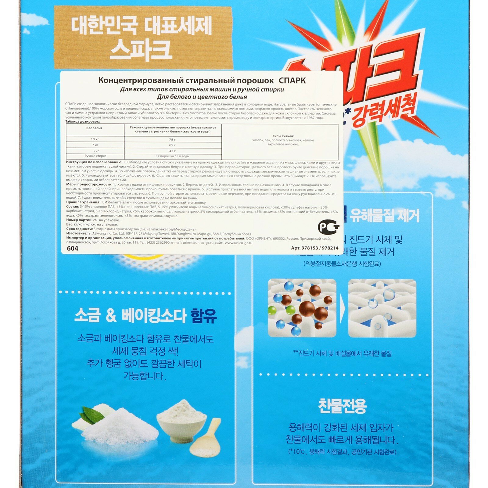 Aekyung Spark Концентрированный стиральный порошок для стирки в холодной воде универсальный 3 кг
