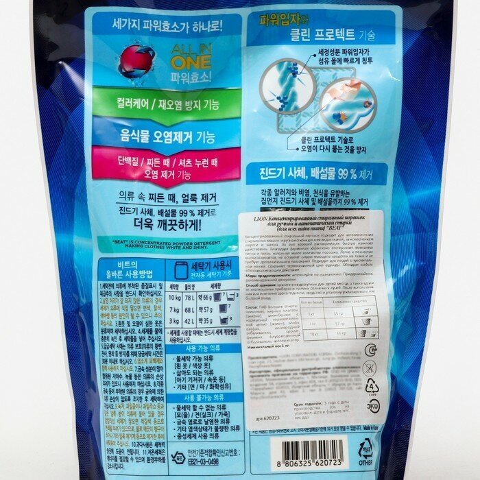 Купить LION BEAT 1kg (Pouch) Концентрированный стиральный порошок для ручной и автоматической стирки (для в