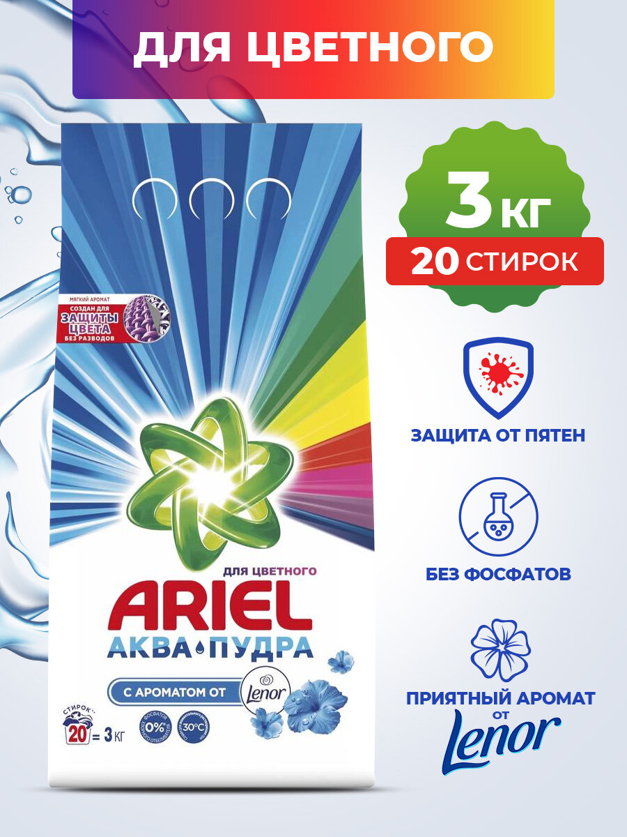 Стиральный порошок для цветного белья ARIEL С ароматом от Lenor, автомат, 3кг