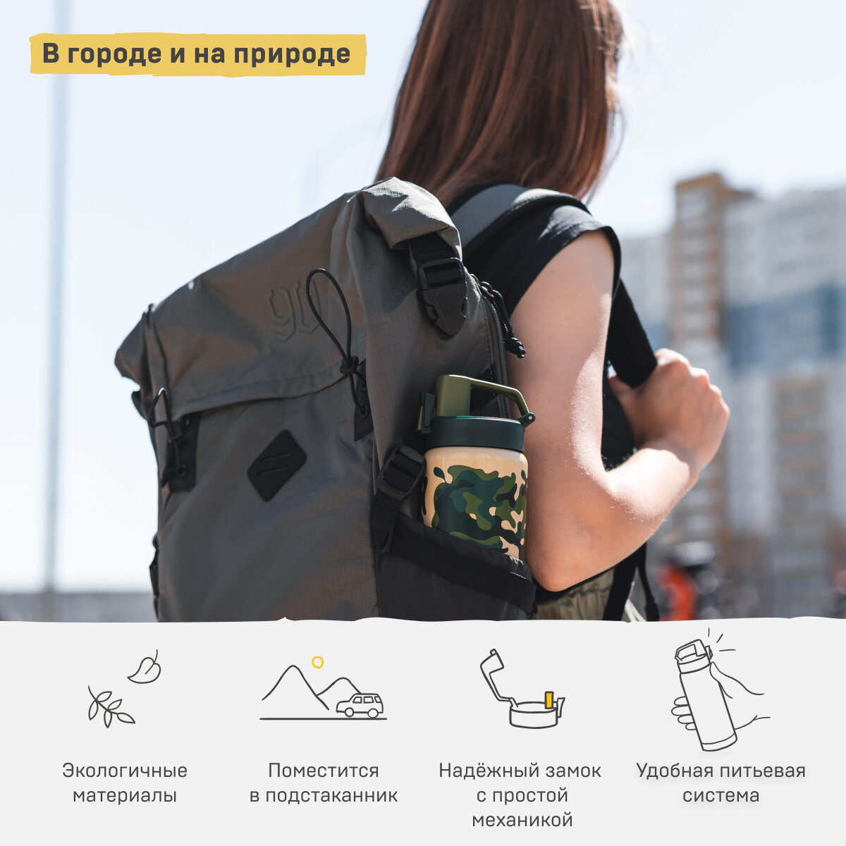 | Минусы: | не для горячих напитков, горячий чай-кофе попить из "горлышка" не получится |