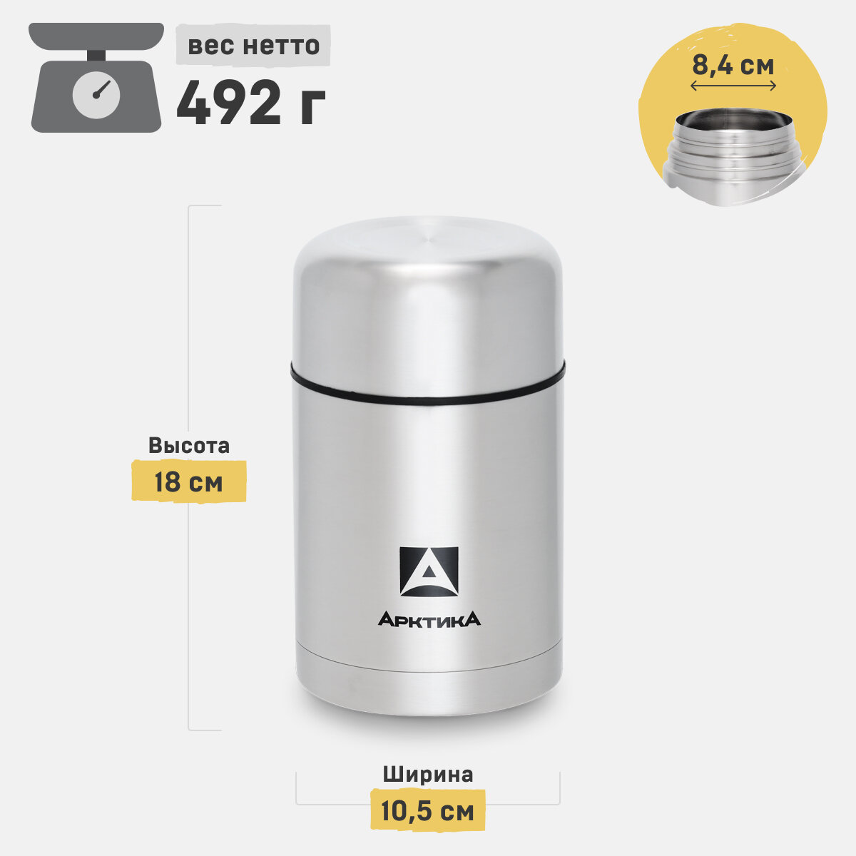 Термос Арктика с супер-широким горлом для супа и еды 301-500, 0,5л, 8ч