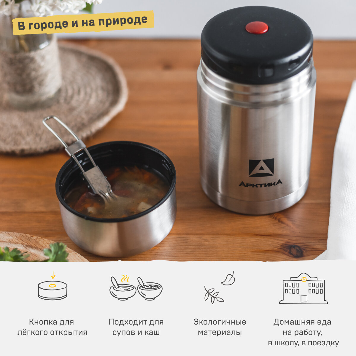 Термос Арктика с супер-широким горлом для супа и еды 301-750, 0,75л, 12ч