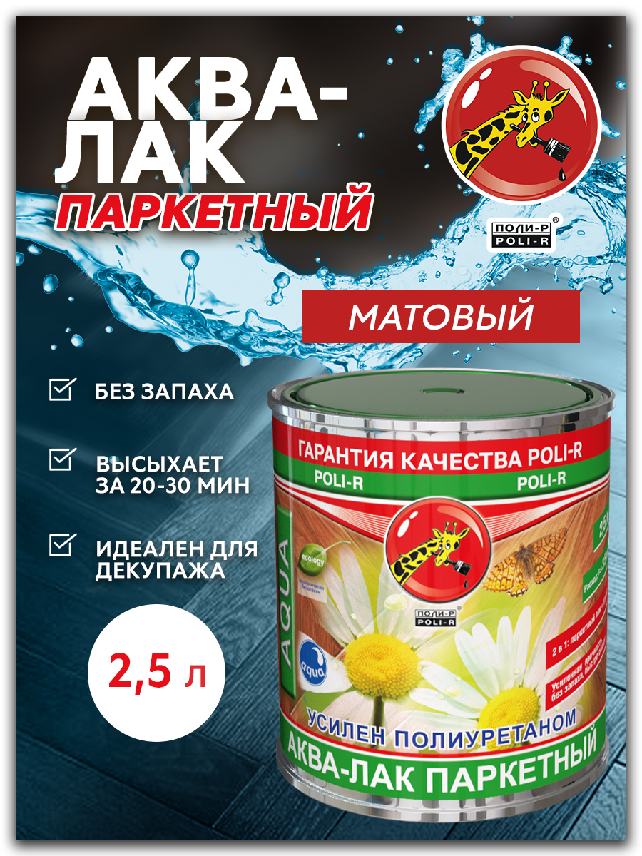 Аква-Лак Паркетный Poli-R 2.5л Глянцевый, Без Запаза / Поли-Р.