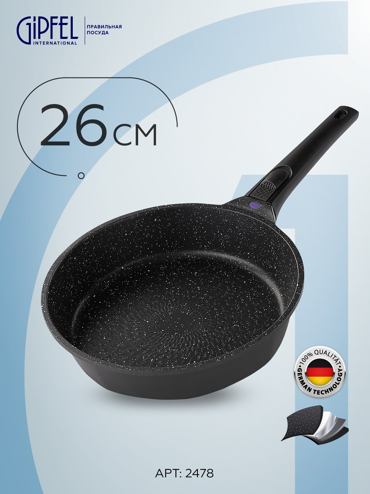 Сковорода GIPFEL Proofet 2478, 26см, съемная ручка, без крышки, черный