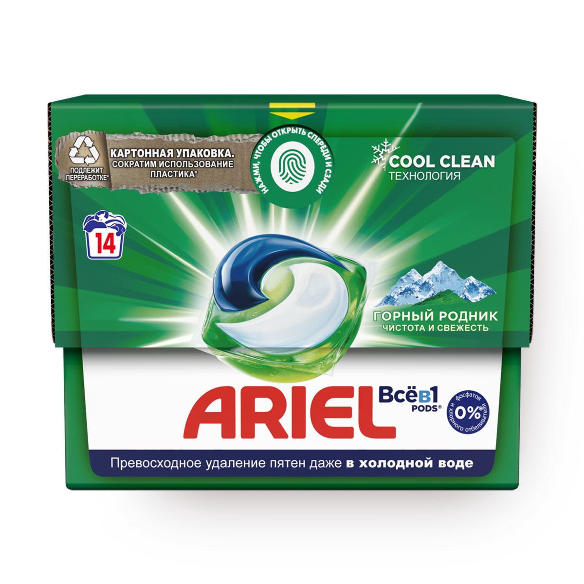 Капсулы для стирки Ariel Pods, все в 1, горный Pодник, 14 шт
