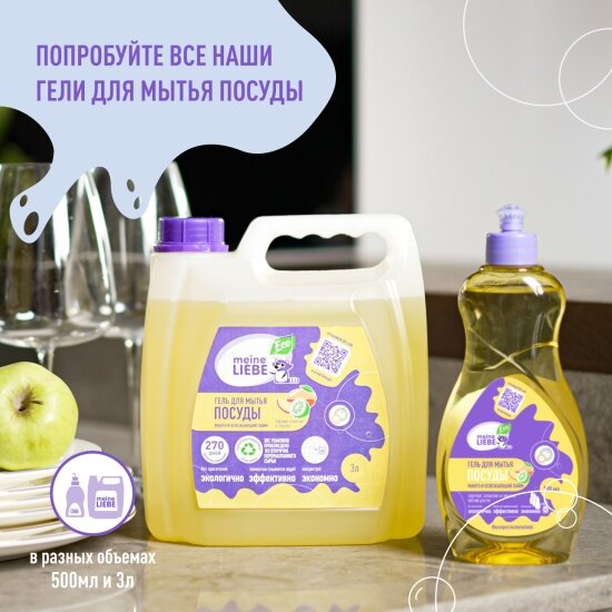 Гель для мытья посуды Meine Liebe "Манго и освежающий лайм", концентрат, 3 л