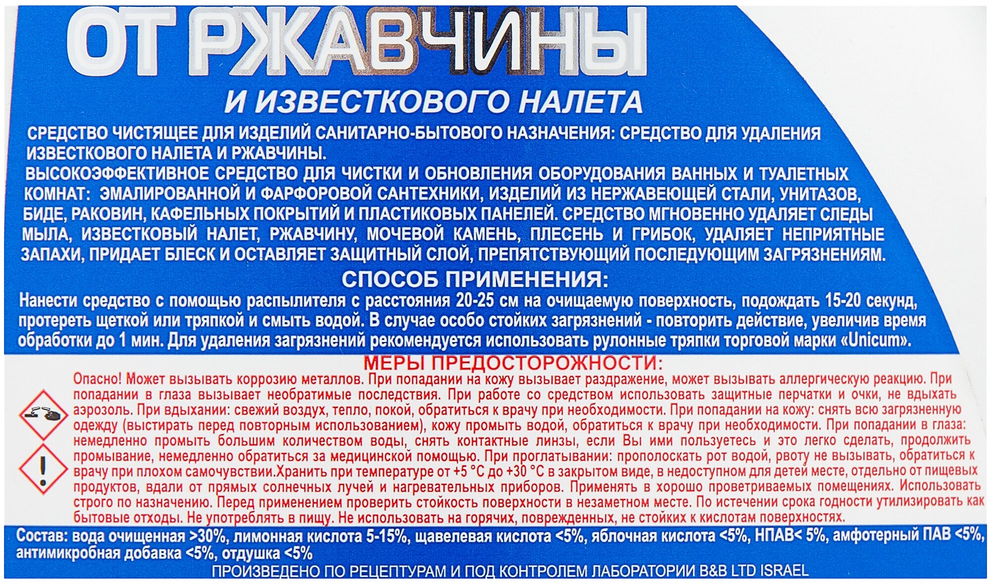 Средство для удаления известкового налета и ржавчины UNICUM 500 мл