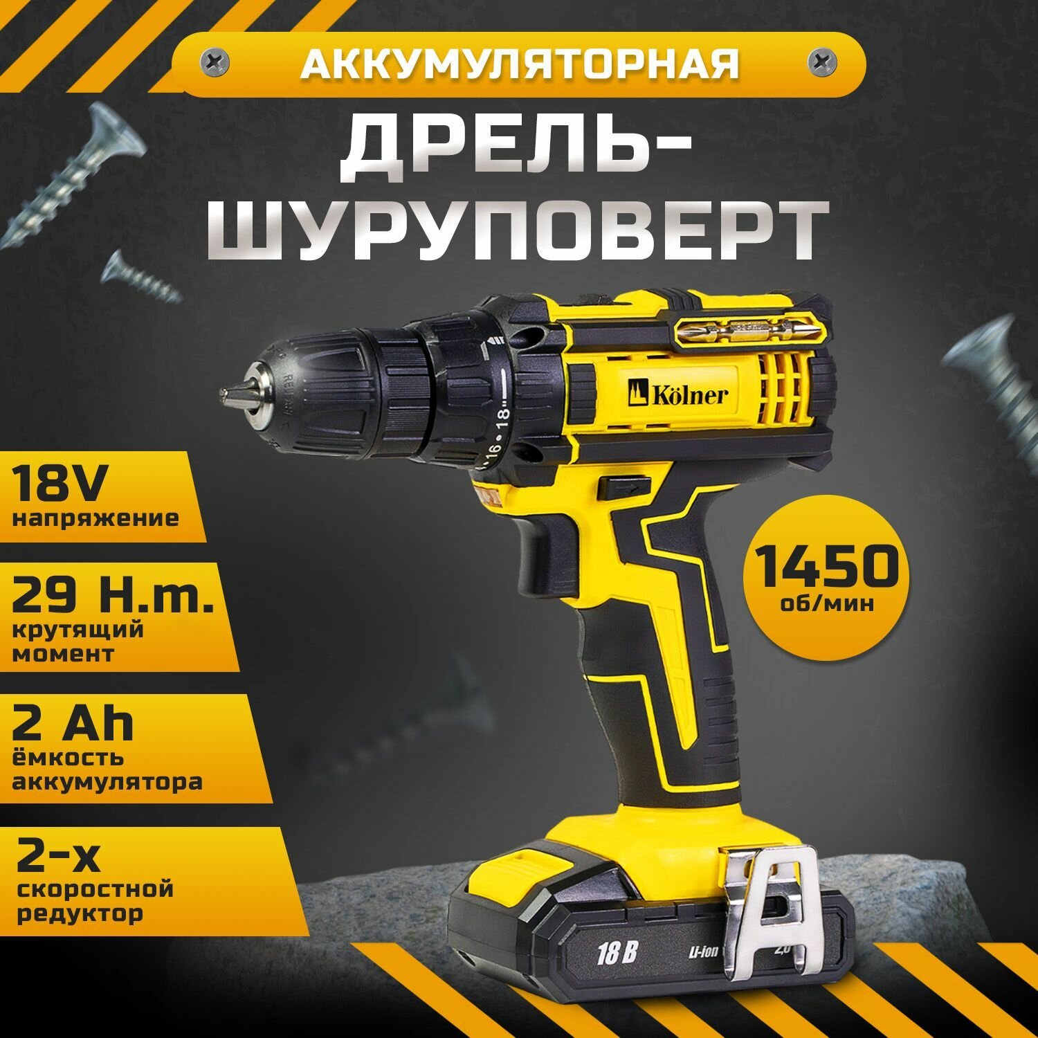 Аккумуляторная дрель-шуруповерт KOLNER KCD 18/2L