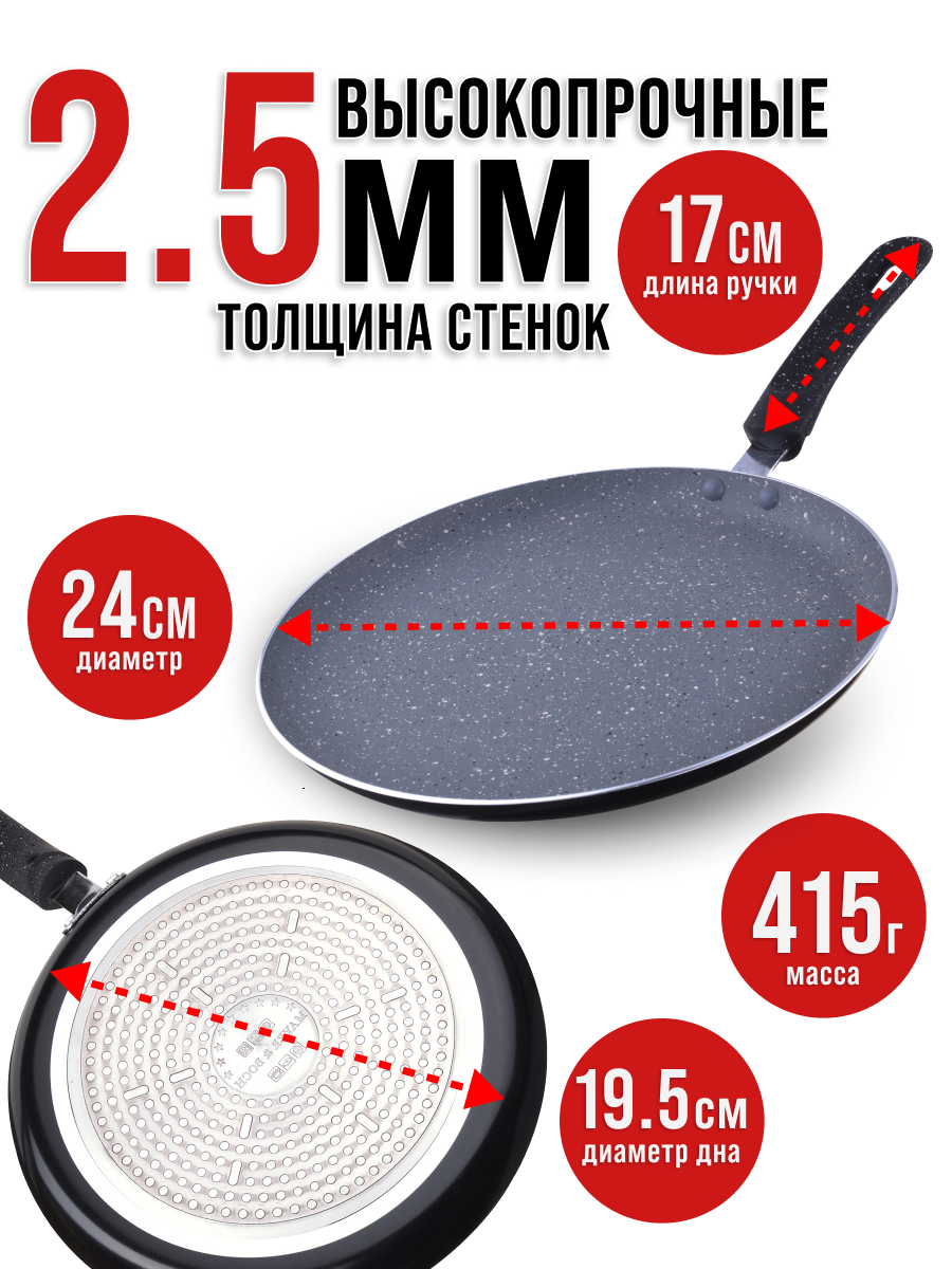 Сковорода блинная 24 см мрам/кр АП индукц/дно