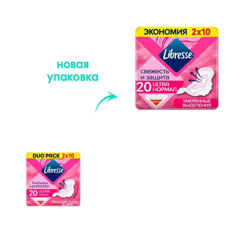 Гигиенические прокладки Libresse Ultra Normal DUO с мягкой поверхностью, 20 шт.