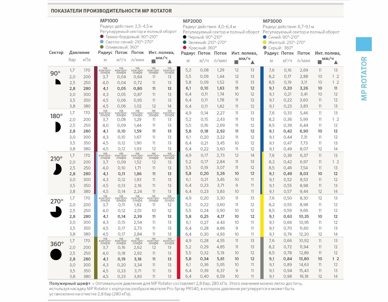 | Отзыв: | Купил вместе с другими форсунками mp-3000. По крайней мере эта работает. Но радиус полива меньше. Давление и диаметр трубы в норме. |