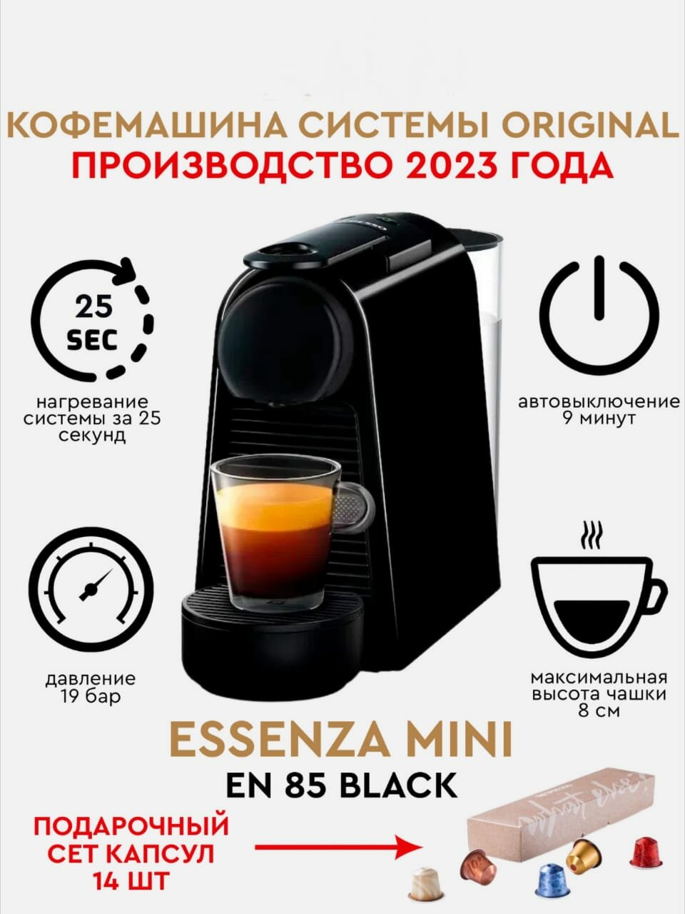 простота использования 19 бар вкусный кофе занимает мало места красивый цвет в подарок идёт 14 капсул несперессо очень красивая коробка |